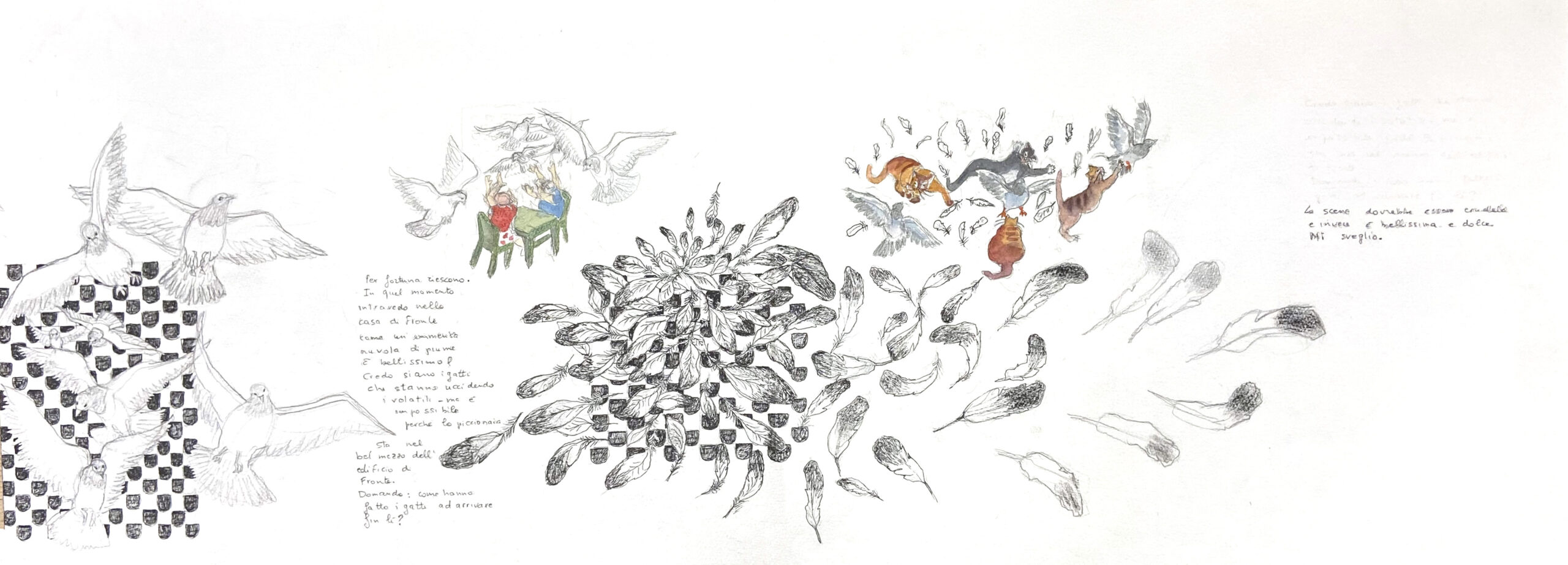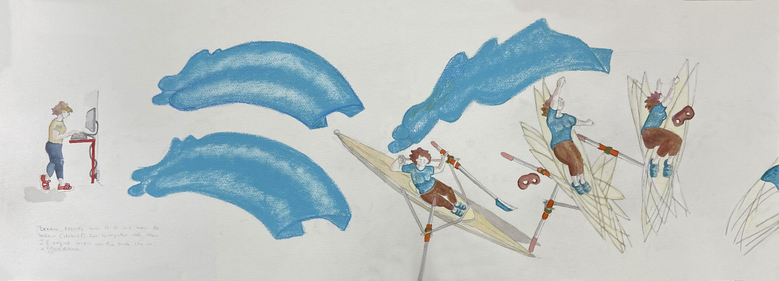 J’ai terminé mon court-métrage d’animation “La Dormition”, qui sera visible aux portes ouvertes de l’atelier et j’ai commencé une série des dessins en acrylique mais aussi crayon sur papier et aquarelle sur le thème : les rêves, mes rêves. Certains prendront la forme du leporello (pliage en accordéon).