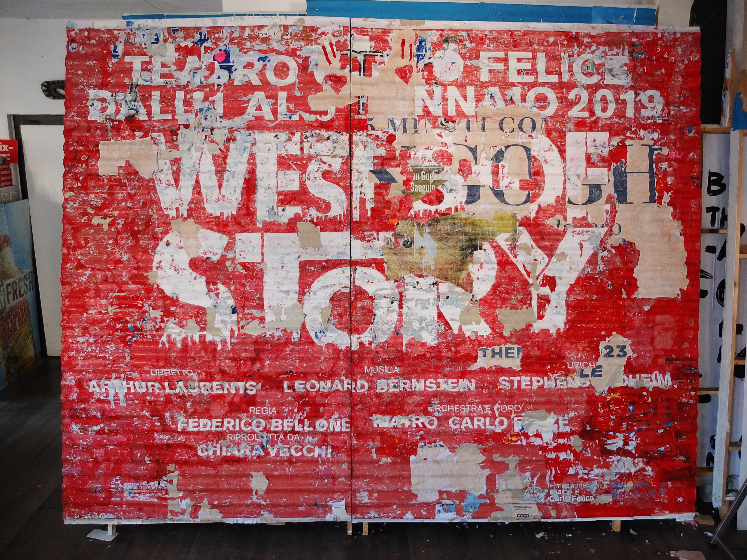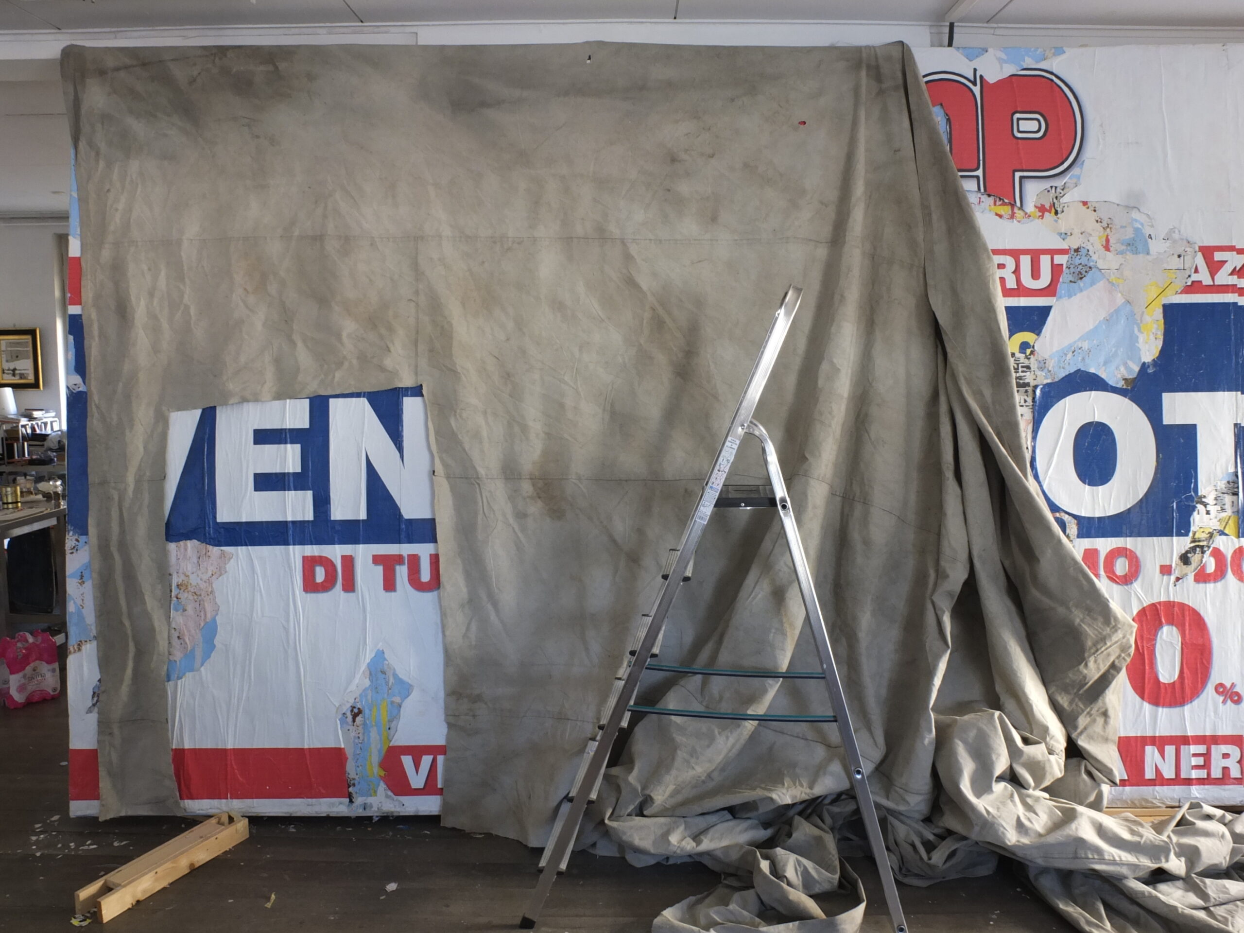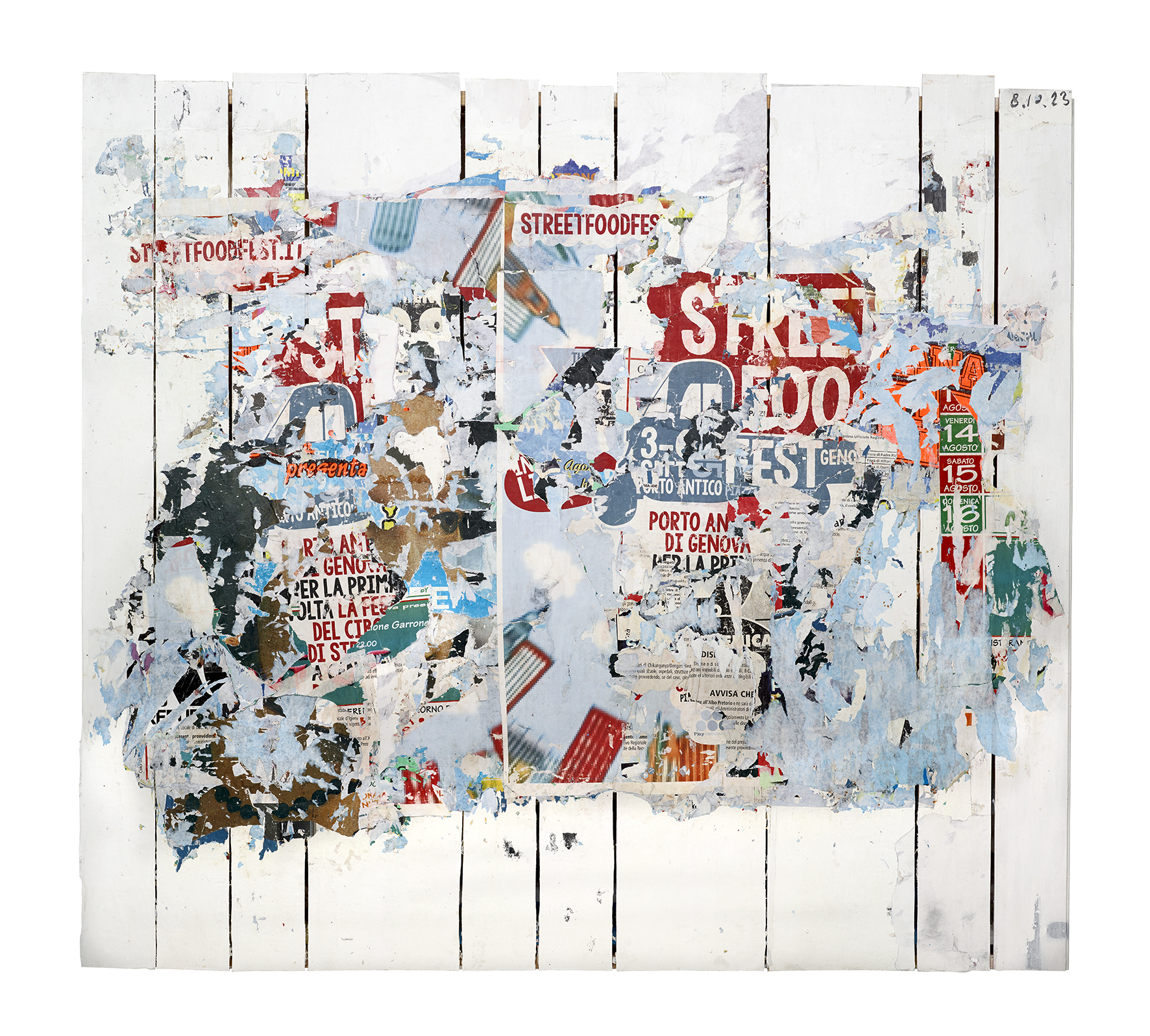Ce serait intéressant que ton travail soit montré dans un environnement dur, très stérile, tiré d’un contexte d’origine. Ainsi va notre monde… aliénant, déchiré, écaillé, mais à y regarder plus attentivement cela en dit long. Juste dans la rue ça ne se remarquerait pas, là c’est juste une clôture, une tôle ondulée qui recouvre quelque chose, dissimule quelque chose, se fond dans l’environnement et se préoccupe de messages de toutes sortes. Au fil du temps, une bataille se pose pour une attention qui n’est plus ou à peine compréhensible. Les messages, pour la plupart culturels, sont devenus un miroir d’indifférence et d’égoïsme. En les replaçant consciemment dans la sphère culturelle, nous pouvons soudainement regarder dans ce miroir… Cela renvoie aussi au ready-made et au found-art, mais va plus profondément dans l’époque… Pour ceux qui osent le voir et le ressentir.