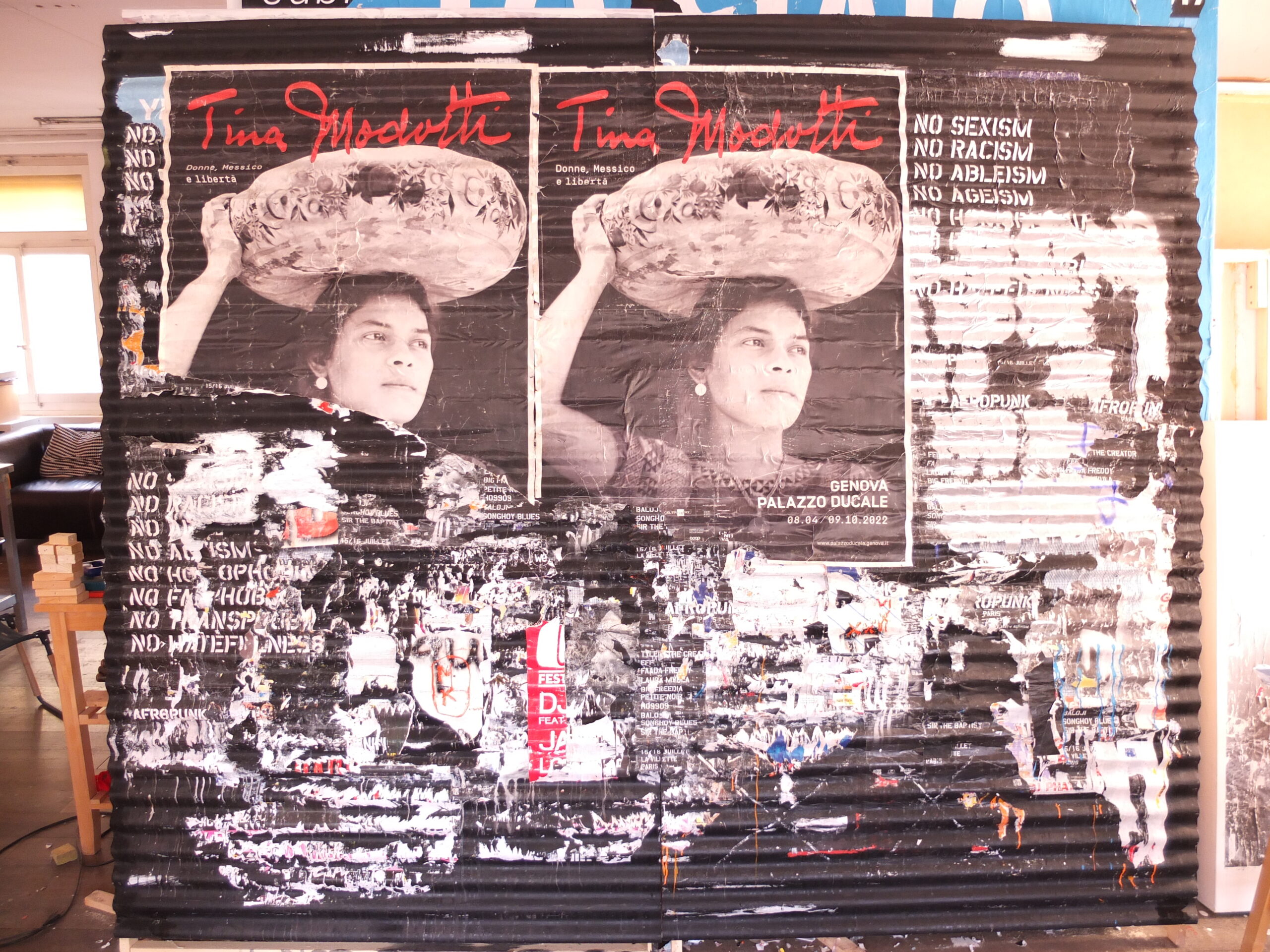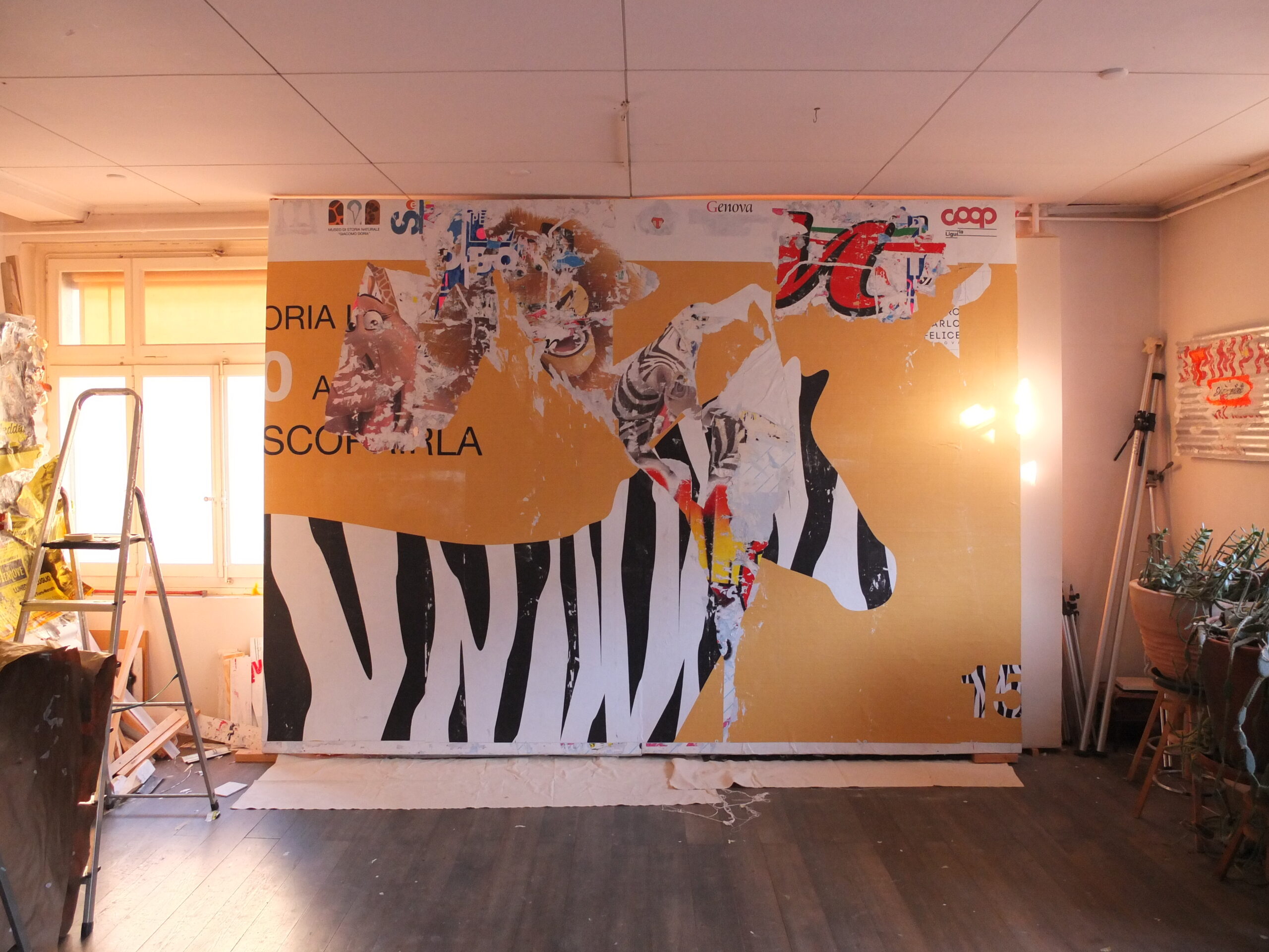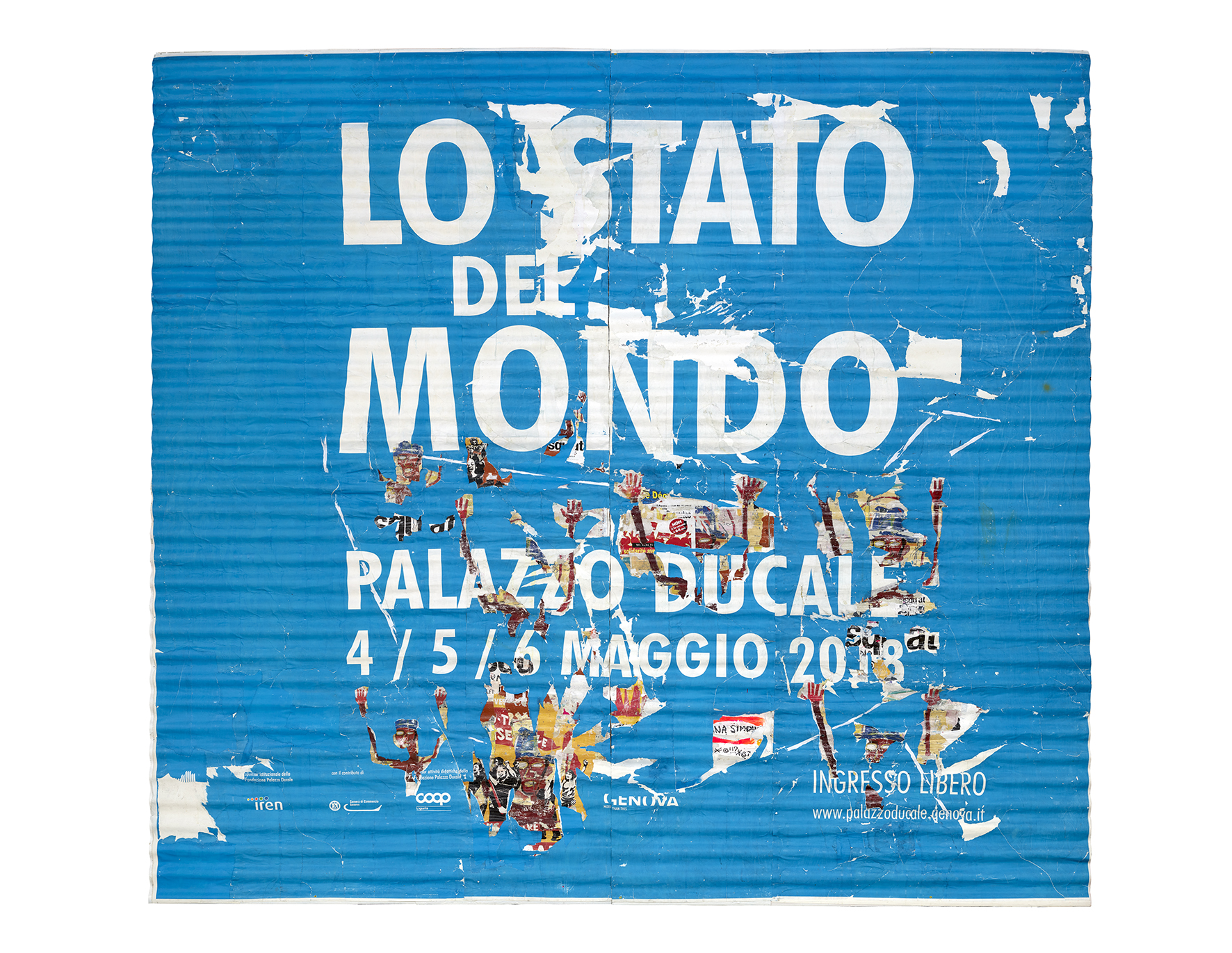 Ce serait intéressant que ton travail soit montré dans un environnement dur, très stérile, tiré d’un contexte d’origine. Ainsi va notre monde… aliénant, déchiré, écaillé, mais à y regarder plus attentivement cela en dit long. Juste dans la rue ça ne se remarquerait pas, là c’est juste une clôture, une tôle ondulée qui recouvre quelque chose, dissimule quelque chose, se fond dans l’environnement et se préoccupe de messages de toutes sortes. Au fil du temps, une bataille se pose pour une attention qui n’est plus ou à peine compréhensible. Les messages, pour la plupart culturels, sont devenus un miroir d’indifférence et d’égoïsme. En les replaçant consciemment dans la sphère culturelle, nous pouvons soudainement regarder dans ce miroir… Cela renvoie aussi au ready-made et au found-art, mais va plus profondément dans l’époque… Pour ceux qui osent le voir et le ressentir.