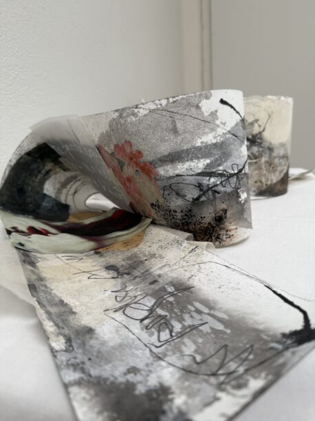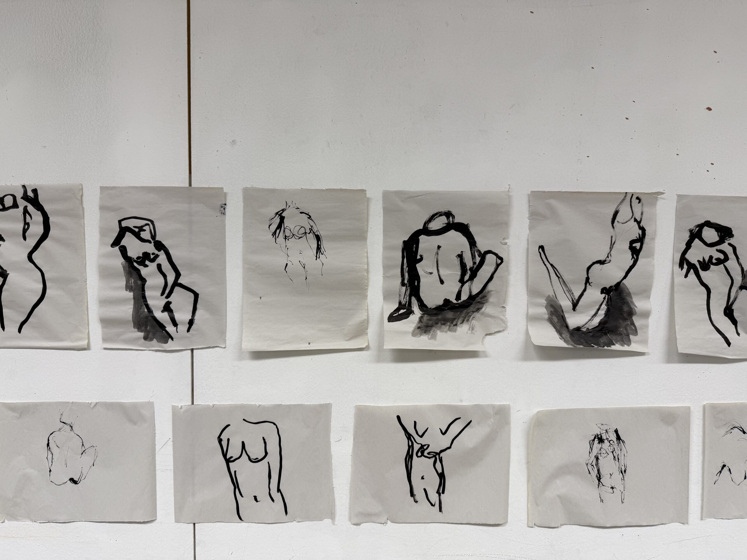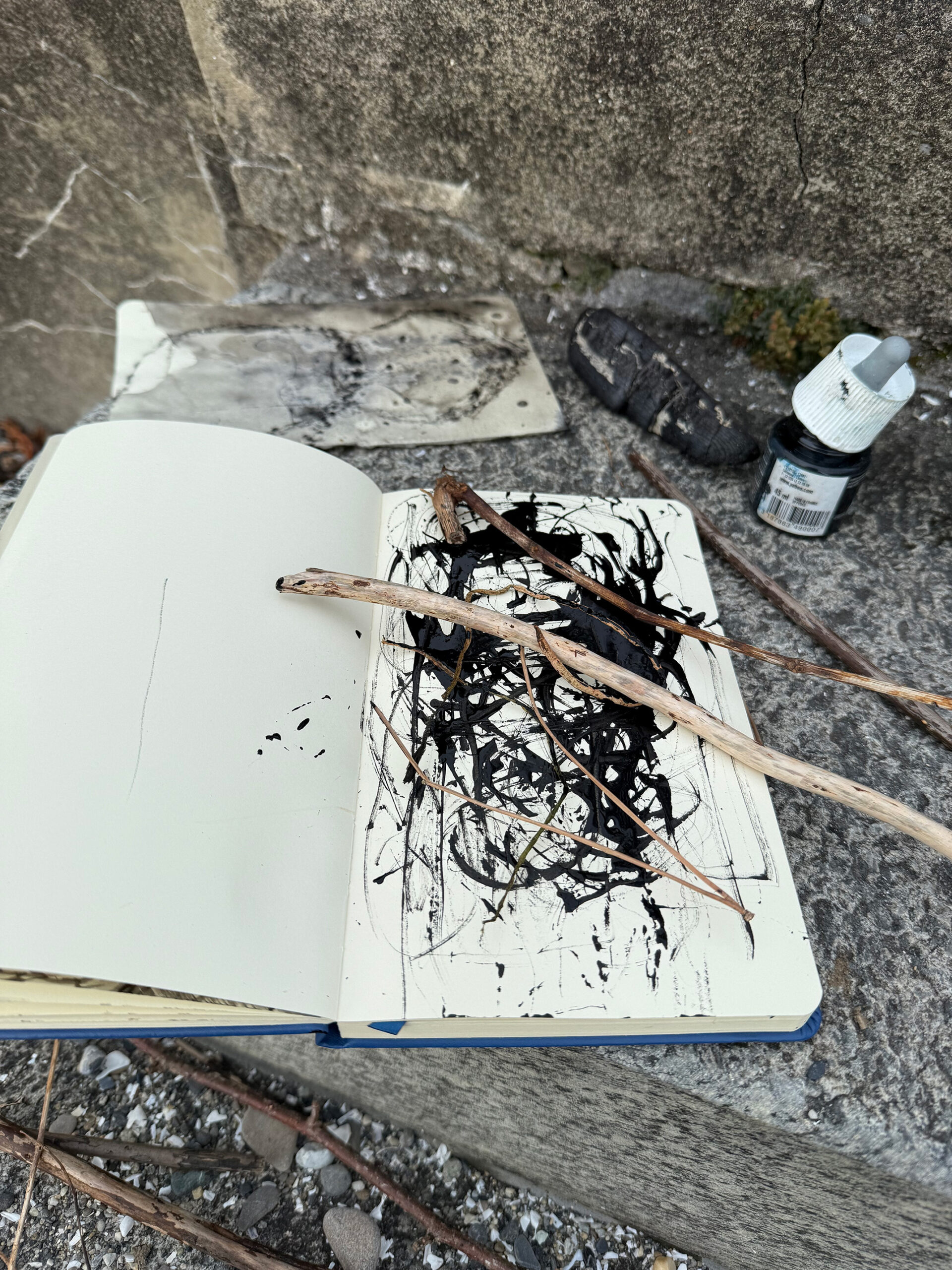 La matière, la texture, les lumières, les pigments, le papier, le charbon, les pinceaux, les mines, les toiles, les spatules, les encres, j’applique, je touche, je frotte, je caresse, je lisse, je gratte, JE RESPIRE.